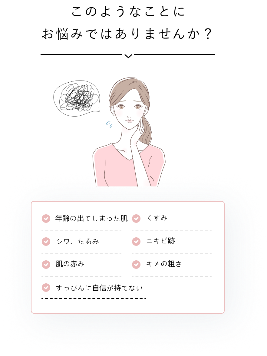 年齢と共に新陳代謝やコラーゲン生成が衰え、肌のハリやキメがなくなってしまいます。肌のつくられる基底層まで届く特殊な光を当て、肌の細胞に働きかけ内側から肌の機能改善を目指します。コラーゲン生成やターンオーバーが正常に行われ、本来の肌の潤いやハリを取り戻します。セルフケアでは解決できなかったお悩みを何でもご相談ください。